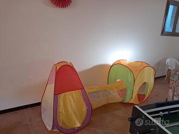 Tende da gioco multicolore per bambini a cubo e a piramide, tunnel di gioco.
