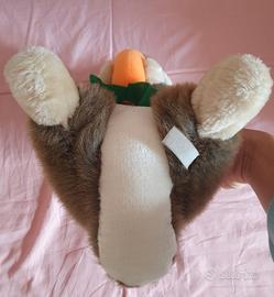 Bellissimo e tenerissimo peluche a forma di coniglietto con carota. Vintage ma totalmente nuovo, dimensioni come da foto (40 cm circa), è grandicello, morbido e coccoloso.