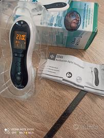 Termometro a infrarossi per bambini e adulti, doppia funzione per misurazione orecchio e fronte, dispone di una luce per poter effettuare la misurazione sulla fronte mentre il bimbo dorme,display LCD ben visibile e suoni che si possono disattivare per non disturbare il sonno dei bimbi. Completo di scatola originale e istruzioni