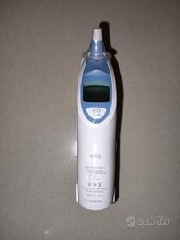 Termometro auricolare digitale comprensivo di una ventina di tappi igienici monouso. Escluse batterie (funziona con 2 AA).