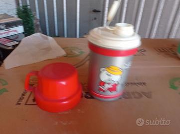 Vendo thermos per bambini con disegno di gattino stile cartoon.