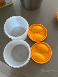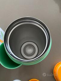 Tiene in caldo la pappa o il latte per molto tempo!! Suoer comodo!! Usato pochissimo perche ne abbiamo due e questo è stato utilizzato una volta sola!! I contenitori hanno entrambi le guarnizioni ed è come nuovo!!