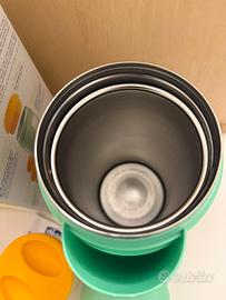 Il portavivande Step Up Family in acciaio inox è perfetto per conservare la pappa del bambino, perché mantiene la temperatura per 5 ore. Il portavivande Step Up Family è studiato per rendere più semplice il momento della pappa ed è comodo e pratico quando sei fuori casa. Include due contenitori da 250 ml (per la pappa, la minestrina e l'omogeneizzato), una tasca porta-posate e un tappo che si trasforma in tazza, per semplificare il momento della pappa. Il contenitore è in acciaio inox e può essere utilizzato anche dopo lo svezzamento come thermos per trasportare cibo caldo o freddo e bevande per tutta la famiglia.