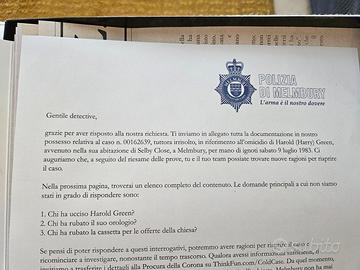 Contenuto: Completo di tutti i materiali originali (ritagli di giornale, rapporti della polizia, foto e prove).