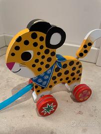 Gioco prima infanzia, tigre da tirare in legno , la coda ha una molla e si tira.