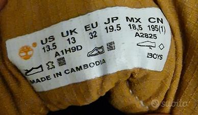 Scarponcini Timberland in camoscio giallo taglia 32 come da foto.