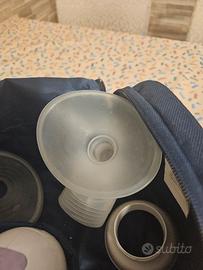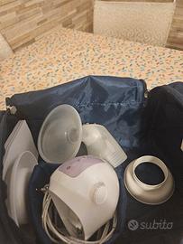 Tiralatte elettrico usato pochissimo e perfettamente funzionante. Barattolini aggiuntivi per conservare il latte una volta tirato. Tutto sterilizzato e disinfettato con borsa per riporre e scatola originale.
