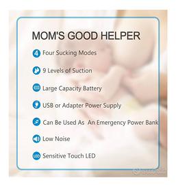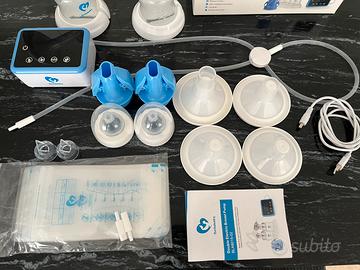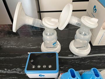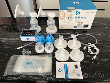 Tiralatte elettrico con funzionamento aspirazione doppia per velocizzare la raccolta latte materno. Se si preferisce funziona anche in singolo. Usato pochissimo come nuovo completo di scatola originale e manuale istruzioni. Complete di tutte le sacche originali raccolta latte mai usate. Aspirazione potente con varie dimensioni di flangia frontale. 4 modalità e 9 livelli di aspirazione. Cavo ricarica compreso. Sterilizzabile senza problemi. Dotato anche di die comodi biberon.