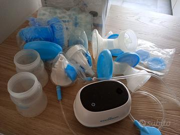 Tiralatte elettrico doppio usato pochissimo.Diverse modalità e livelli di aspirazione per adattarsi a tutte le mamme e rendere l' aspirazione più veloce.Pratico,leggero e silenzioso.Sacchetti per conservare il latte mai usati.(Nelle foto ulteriori dettagli).