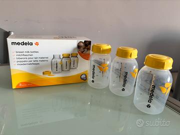 Tiralatte elettrico doppio compatto e silenzioso con batteria ricaricabile. Estrazione rapida ed efficace grazie alla tecnologia 2-Phase Expression e coppe PersonalFit Flex. Mai utilizzato. Incluso anche confezione con 3 bottigliette medela per la conservazione del latte e una confezione, ovviamente sigillata, di coppette assorbenti medela.