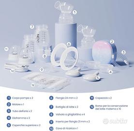 NCVI Tiralatte Elettrico Doppio, Tiralatte Elettrico 8122 con 4 Modalità 9 Livelli, Tiralatte con Flange 21/24mm, Tiralatte Ricaricabile Ultra-Quiet per Casa e Viaggi, Touchscreen LED