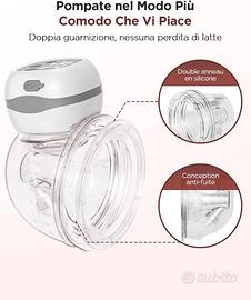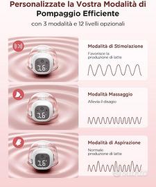 Tiralatte Elettrico Indossabile Portatile, Leggero Tira Latte Neonati Elettrico con 3 modalità e 12 livelli, Senza BPA, Installazione Rapida 5s