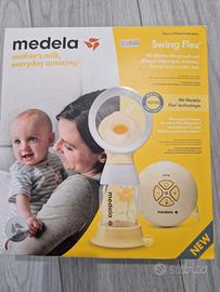 Tiralatte elettrico Medela Swing Flex compatto portatile e pratico da usare. Con Bottiglia con tappo, coppe seno varie misure e supporto bottiglie.