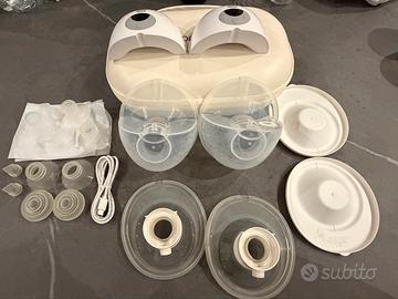 Tiralatte elettico momcozy m5 indossabile, doppio, con 3 modalità e 9 livelli. Plastica delle coppette un pó opacizzata dovuta alla sterilizzazione.