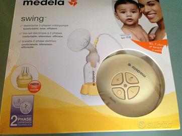 Vendo tiralatte elettrico singolo Medela Swing 2 fasi comodo, leggero e portatile. Funziona sia collegato alla corrente elettrico che a pile. In dotazione tettarella calma, l'innovativa soluzione di alimentazione studiata per i bambini allattati al seno. In omaggio sacche per il latte materno Pump & Save per conservare nel frigorifero o nel congelatore il latte materno.