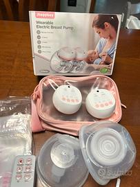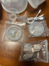 completo di scatola originale, libretto di istruzioni, cavo caricabatterie, 2 tiralatte completi, pezzi di ricambio, 2 fibbie di regolazione del reggiseno, telecomando e pochette per il trasporto.