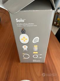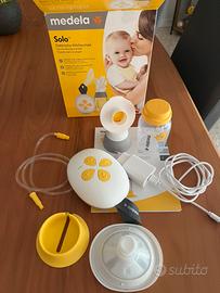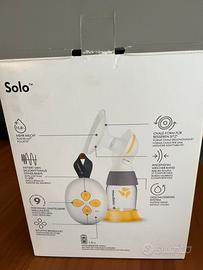 Vendo tiralatte elettrico MEDELA SOLO. Nuovo mai utilizzato. La scatola contiene: 1 x tiralatte Solo™ 1x bottiglia da 150 ml con tappo 1 x supporto bottiglia 1 x connettore PersonalFit Flex™ 1 x coppa per il seno PersonalFit Flex™ da 24 mm 1 x cavo di ricarica USB 1 x trasformatore USB 1 x istruzioni per l'uso per Solo™ Facile da usare: interfaccia intuitiva con 4 pulsanti e 9 impostazioni pre-programmate. Facile da montare e pulire grazie ai pochi componenti. Design leggero e compatto. Maggiore mobilità: batteria ricaricabile integrata che consente fino a 6 sessioni di estrazione con una carica completa. Ricarica più rapida: con porta USB tipo-C, rispetto a una porta micro-USB. Tecnologia 2-Phase Expression®: imita il naturale ritmo di suzione del bambino 1, 2. Coppa per il seno PersonalFit Flex™: per un maggior comfort e l'11,8% di latte in più3. Notevolmente più silenzioso: rispetto al modello precedente, meno di 45 dB al massimo livello di estrazione. Sistema chiuso: impedisce al latte materno di entrare nel tubicino. Per ulteriori informazioni contattatemi.