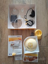Tiralatte Medela Swing come in foto: manca il biberon ma è presente una tettarella aggiuntiva.