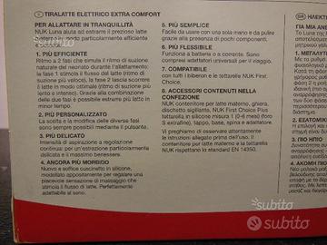 Vendo tiralatte elettrico completo di tutti gli accessori originali e perfettamente funzionante. Nelle foto descrizioni delle caratteristiche. Personalmente aggiungo come qualità la comodità in quanto compatto e la possibilità di essere usato sia con alimentazione a filo che con 3 pile ministilo.