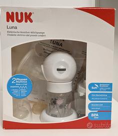 Tiralatte Nuk Luna completo di ogni particolare. Funziona a corrente elettrica e batterie (3 mini stilo).