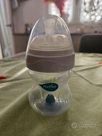Il biberon incluso è anti-colica con sistema di valvola sul fondo, efficace per prevenirere le coliche gassose e le otiti; la tettarella è approvata da AIO – Associazione Italiana Odontoiatri.