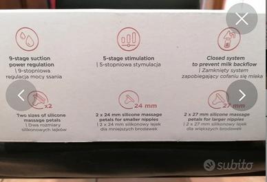 Vendo tiralatte elettrico doppio InnoGIO GIOlatte (modello GIO-355), Nuovo, pagato €109,00 mai estratto dalla confezione, un top di gamma per praticità e comfort. È la soluzione ideale per le mamme che cercano efficienza, velocità e delicatezza in un unico dispositivo. Perché scegliere questo modello: Massima Efficienza (Doppio o Singolo): Può essere utilizzato contemporaneamente su entrambi i seni per dimezzare i tempi di estrazione, oppure come tiralatte singolo a seconda della necessità. Comfort Personalizzato: Dispone di 2 modalità di funzionamento (Stimolazione per avviare il flusso e Aspirazione profonda) con ben 9 livelli di intensità regolabili tramite il moderno display LED touch. Senza Fili e Portatile: Grazie alla batteria ricaricabile integrata ad alta capacità, puoi usarlo ovunque senza l'ingombro di cavi (fino a 150 minuti di autonomia). Silenzioso e Discreto: Progettato per essere ultra-silenzioso, perfetto per sessioni notturne senza disturbare il riposo del bambino. Igiene e Sicurezza: Realizzato con materiali di alta qualità senza BPA. Il design evita il riflusso del latte, garantendo la massima igiene per te e il tuo piccolo. Incluso nella confezione: Corpo motore con display LED retroilluminato. 2 Kit di estrazione completi di biberon e 2 coppie di coppe in silicone morbido. Cavo di ricarica USB. Ottimo anche come idea regalo, data l'integrità della scatola.NUOVO, mai estratto dalla confezione originale.
