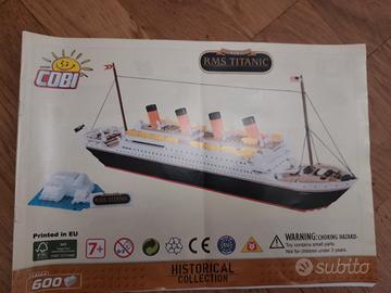 Nave Titanic simile al Lego costruita con mattoncini come dalla foto, libretto. Manchera qualche pezzo.
