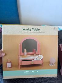 Toeletta bambina in legno di Little Dutch Gioco in legno bambina per giocare a truccarsi Nuova, solo montata e mai usata Con cassettino, specchio inclinabile e 6 accessori sempre in legno: rossetto, trousse ombretti, spazzola, lima unghie, profumo con tappo e spruzzino e smalto Gioco pagato 60€ Con scatola originale. Posso smontarlo e rimetterlo nella sua scatola originale Ottima idea regalo #littledutch #tabledemaquillage #schminktisch #vanitytableset #vanitytable #kaptafel #toelettatruccobambina #gioconuovobambina