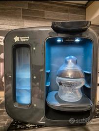 Semplice: aggiungi il latte al biberon, premi il pulsante di accensione per erogare un getto caldo di acqua a 70 °C che uccide i batteri, agita e premi nuovamente il pulsante per erogare acqua fredda