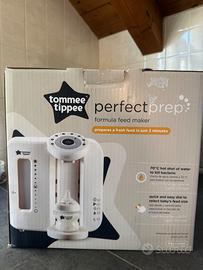 Macchinetta colore bianco Tommee tippee perfect prep per preparare il latte in formula in meno di due minuti. Comoda e utile per la notte. Filtro dell’acqua incluso. Completo di scatola originale.