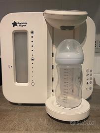 Il sistema di preparazione del biberon Tommee Tippee Perfect Prep prepara il biberon alla giusta temperatura (37°C) in soli 2 minuti. Filtra l'acqua ed elimina eventuali batteri presenti nel latte in polvere. Facile da usare e da pulire grazie alla funzione anticalcare autopulente. Adatto alla maggior parte dei biberon. Utilizzabile con qualsiasi tipo di latte in polvere. Preparazione proporzionale (da 113 ml a 340 ml). Eroga una quantità d'acqua esatta, per una diluizione più precisa e costante. Completo di filtro (durata massima 3 mesi). Facile da pulire (il dispositivo è dotato di una spia che avvisa quando è necessario eseguire il ciclo di pulizia).