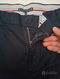 Pantalone modello Chino, taglia 164 cm (12-14 anni), colore blu navy, collezione primavera-estate, 97% Cotone, 3% elastane, chiusura frontale con cerniera e bottone, mini Logo con iconiche strisce Tommy frontale e sulla tasca posteriore. Tessuto elegante e raffinato, indossato solo 1 volta per un matrimonio, in perfetto stato e pari al nuovo come da foto. Pagato in negozio € 79,90.