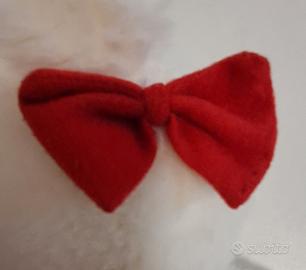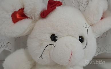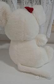 Topolina bianca peluche con fiocchetto rosso in testa e zampette a cuore.🐾