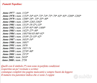 - Fumetti di Topolino a 0.50 cent l'uno, (vedi lista foto n.5)