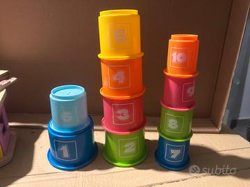 Chicco Gioco Tazze Impilabili, Gioco Forme e Incastri, 10 Tazze Con Dimensioni e Colori Diversi da Impilare, Con Numeri Da Ordinare, Sviluppa La Capacità di Associazione Logica, 9-36M