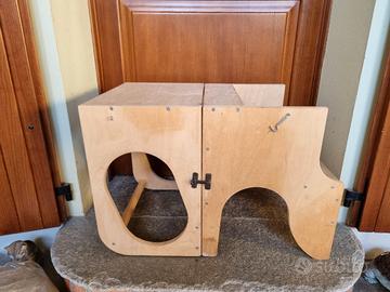 Torre in legno naturale fabbricata da un artigiano, si apre diventando tavolino con panca. Sono presenti i ganci di sicurezza sia per la posizione sia per quella chiusa. Può essere verniciata a piacere. Usata sempre con tanta cura. prezzo trattabile. Ritiro in loco. Prezzo trattabile.