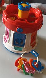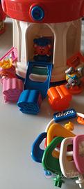 Torre del castello della Chicco, con personaggi e blocchi a incastro più chiavi per aprire le porte e luci colorate. Completo di tutti i pezzi e come mai usato.