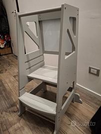 Vendo torre di apprendimento in legno stabile e solida con lavagna magnetica bifacciale e possibilità di regolare le altezze. Consegna a mano.
