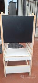 torre di apprendimento posizionabile su tre altezze diverse con lavagnetta sul davanti utilizzabile con i gessetti