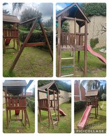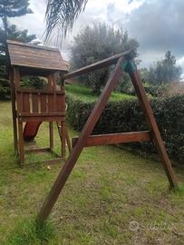 torre gioco con altalena e scivolo da giardino
