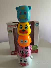Vendo gioco torre impilabile con animali colorati, scuotendoli suonano. Materiale plastica, marca Vitamina G, 5 pezzi. Ottimo, dotato di scatola originale.