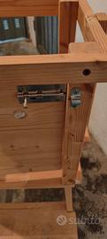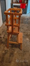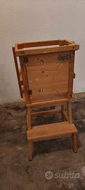 come da oggetto Torre Montessoriana artigianale in legno , con sponde laterali di sicurezza e chiavistello per chiusura porticina. Presenta alcuni segni di impronte della manina. Consegna /ritiro in cuneo e provincia.
