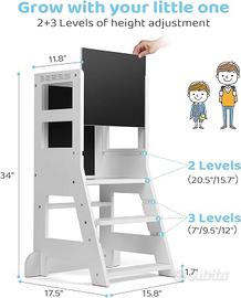 【ADJUSTABLE RISE FOR AGES 18-36 MONTHS】As children grow, the baby tower adapts to the height of each child and participates in every stage of children's growth, the tower floor has two heights to choose from to adjust (40 cm/52 cm), the steps have three adjustable heights (7 inch/9.5 inch/1 2.5 ). 2.Once the assembly is complete, the entire children's tower measures 86.5 x 30 x 40 cm.