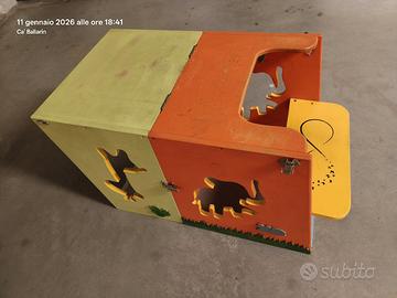 Torre montessoriana che si trasforma in banchetto con seggiolino.