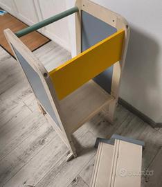 Torre di osservazione Janod in legno, modello Montessori. 2 altezze regolabili, sgabello removibile e lavagna per disegnare. Adatta dai 18 mesi fino a 5-6 anni (max 30 kg). Perfetta per coinvolgere i bambini in cucina o al lavandino in sicurezza. Pagata 159 € nel 2025, usata pochissimo, in ottime condizioni.