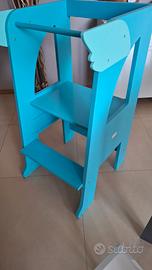 vendo torre Montessori marca Rocketbaby. Usata ma chiaramente in perfetto stato pari al nuovo. Perfetta per far salire i bambini fino ad arrivare a ripiani più alti come ad esempio.pio in cucina. Completamente in legno con ripiano e scalini regolabili in base all altezza del bambino. molto stabile e anticipata grazie alla paratiaposteriorw e laterale.
