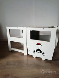 Torre montessoriana pieghevole personalizzata con nome e lavagna. 3 in 1: scrivania bambini - panchina o pedana - torre.