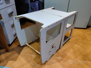 Torre montessoriana craffox orso bianca. Può essere usata come scaletta, sgabello, tavolino e lavagna. Metodo montessori. Praticamente nuova.