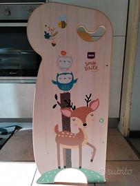 La Torre Montessoriana in Legno di Tuco è lo strumento ideale per avvicinare i bambini all'altezza di tavoli e lavabi in modo sicuro, aiutandoli a sviluppare autonomia, nuove competenze e fiducia nelle proprie capacità. 100% Made in Italy Caratteristiche principali: Dimensioni: 44 x 36,5 x 90 cm. Età: dai 18 mesi in su Materiali sostenibili: Realizzata in legno certificato FSC® con vernice ad acqua atossica, garantisce sicurezza e rispetto per l’ambiente. Gradino regolabile: Il gradino superiore può essere impostato a tre altezze diverse (27,5 - 36,5 - 45,5 cm) per seguire la crescita del bambino. Gradino inferiore fisso: Posizionato a 18,5 cm da terra, è più lungo per facilitare l'accesso alla torre. Sicurezza avanzata: Due protezioni – una barra anteriore e una posteriore – evitano cadute in caso di sbilanciamento. Le pareti laterali con zampe a pianta larga assicurano una stabilità eccezionale. Angoli stondati: Tutti i bordi sono arrotondati per garantire la massima sicurezza. Facilmente lavabile: La superficie trattata con vernice trasparente si pulisce facilmente con un panno morbido e detergenti comuni. Montaggio semplice: Struttura facile da assemblare con poche viti incluse Preferibile consegna a mano in Valle d'Aosta. Oppure eventuali spese di spedizione da concordare.