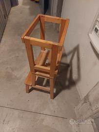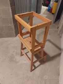 Vendo torre montessoriana nella foto. Possibilità di aprire e chiudere la spondina lato gradini per agevolare l'accesso. Sgabello BEKVÄM Ikea utilizzato come struttura di base. Modificato artigianalmente con travetti in legno di abete. Il tutto verniciato con vernice trasparente all'acqua. Materiali naturali atossici per la sicurezza del bambino. La torre è venduta come singolo pezzo, non smontabile. Solo ritiro a mano.